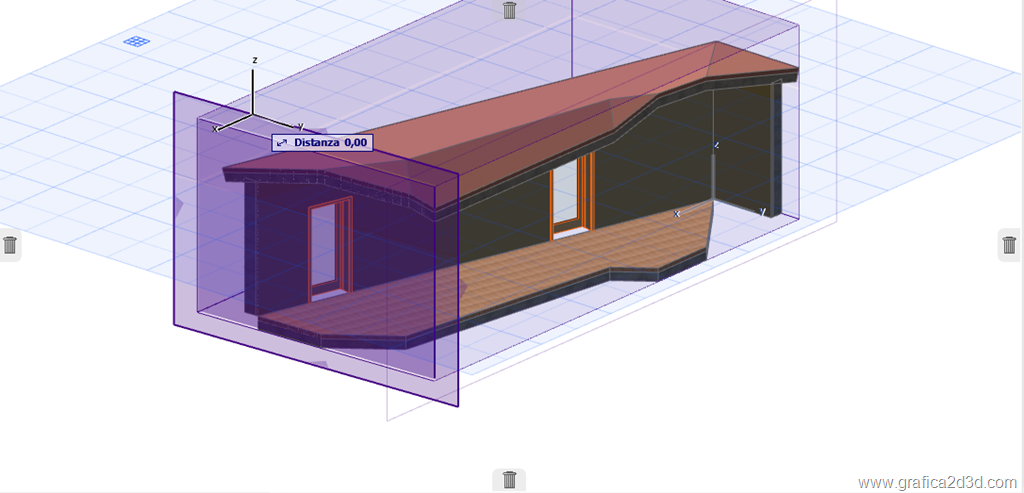 Schiacciando il pulsante dalla piante appare una linea marcata in alto che rappresenta appunto la linea di taglio della sezione 3d