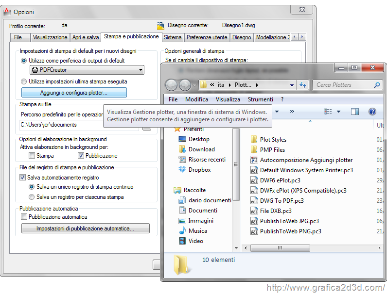 andiamo in stampa e pubblicazione aggiungi o configura plotter autocomposizione aggiungi plotter