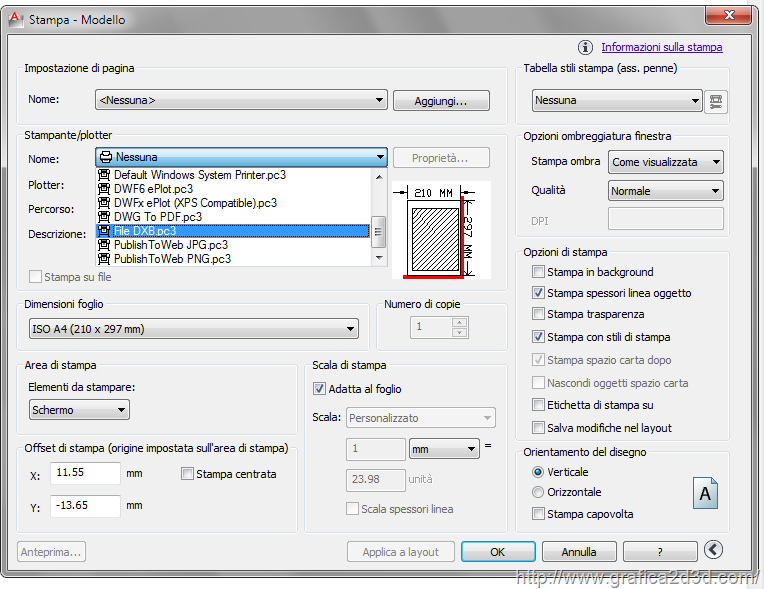 per creare un file dxb dobbiamo simulare una stampa con queste impostazioni