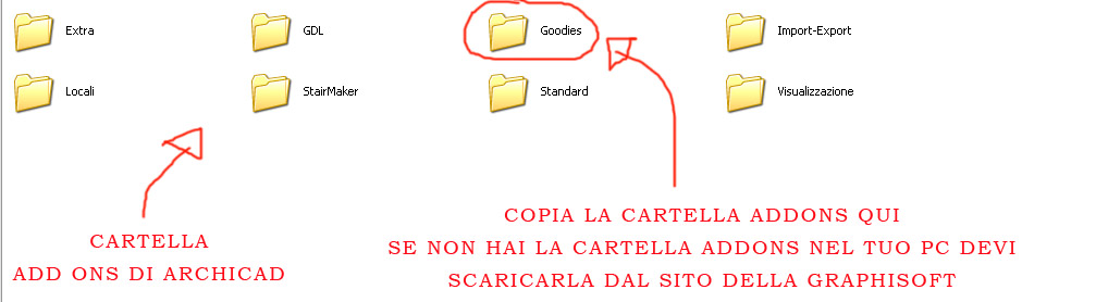 questa cartella contiene una serie di funzioni aggiuntive per archicad per rendere attivi i goodies occorre copiare la cartella goodies all’ interno della cartella addons di archicad