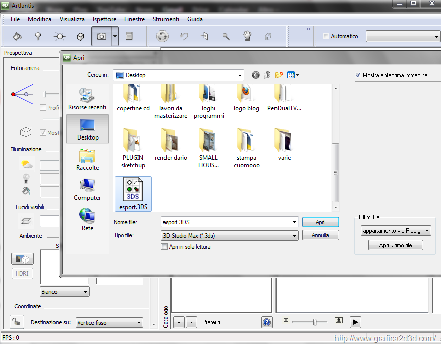 A questo punto apriamo artlantis e scegliamo il formato del nostro file, in questo caso ho salvato in 3ds