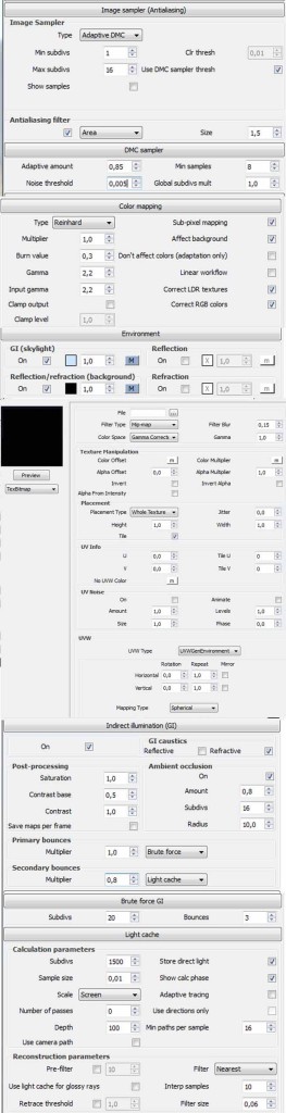 Nei settaggi render ho utilizzato la combinazione BF+LC