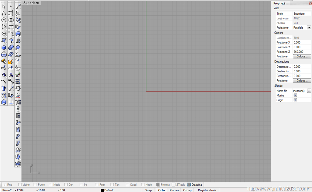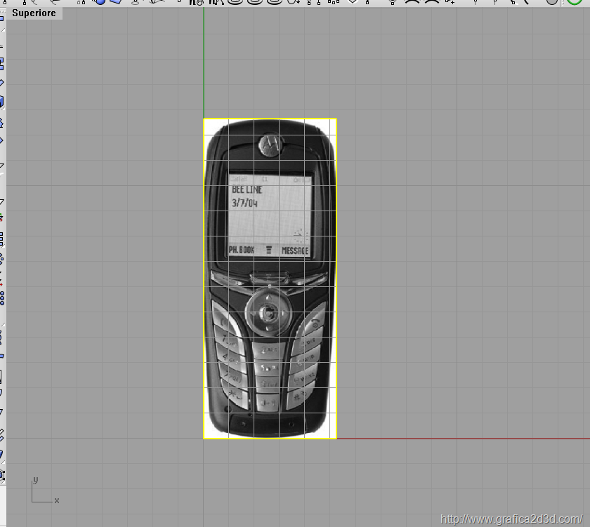entrati in rhinoceros andiamo nella vista relativa all’immagine che vogliamo inserire, in questo caso si tratta di una vista dall’alto del cellulare quindi sceglierò la vista superiore