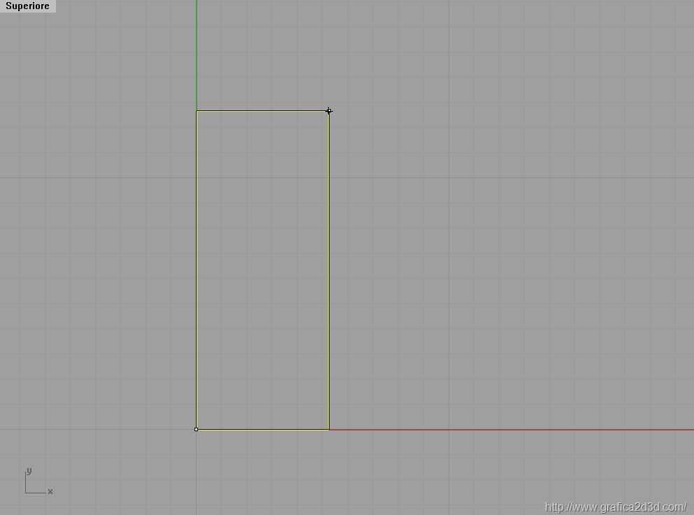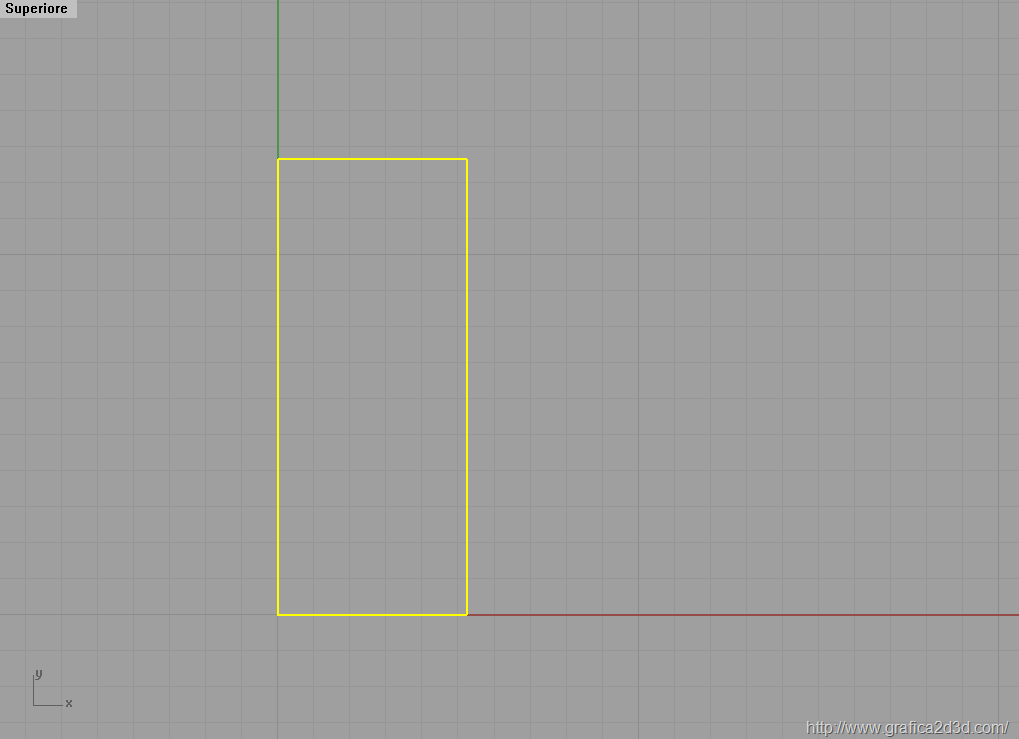 Disegno quindi un rettangolo con le dimensioni volute, posizionando lo spigolo in basso a sin nel punto 0,0 di rhino