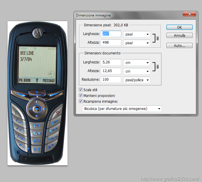 prima di salvare bisogna dimensionare per quanto possibile l’immagine alle dimensioni reali dell’oggetto, ricavabili facilmente cercando una scheda tecnica del prodotto, in questo caso per brevità lascio per brevità le dimensioni che mi propone il programma