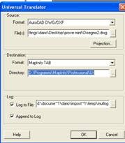 Dal pannello scegliamo il file dwg e il sistema di coordinate italiano gauss