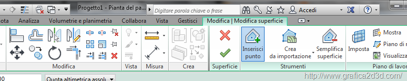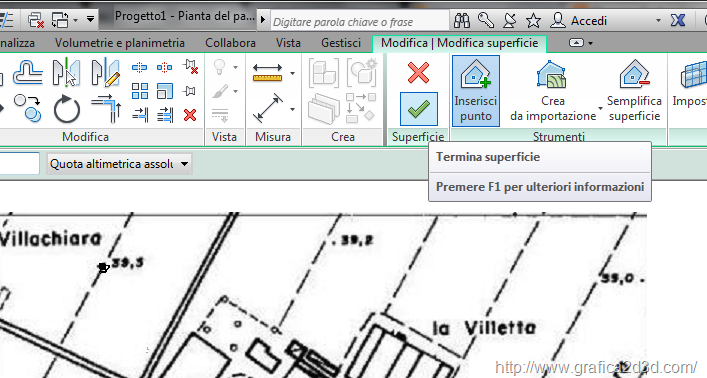 dalla scheda volumetria e planimetria, scegliamo superfice topografica