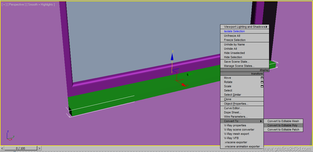 volendo per modellare in maniera più accurata la finestra, possiamo convertire il telaio in un oggetto poligonale (telaio selezionato, tasto destro, convert to editable poly)