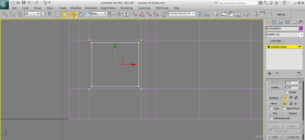 spostiamo il rettangolo al centro dell’infisso ed estrudiamolo sempre con il modificatore extrude