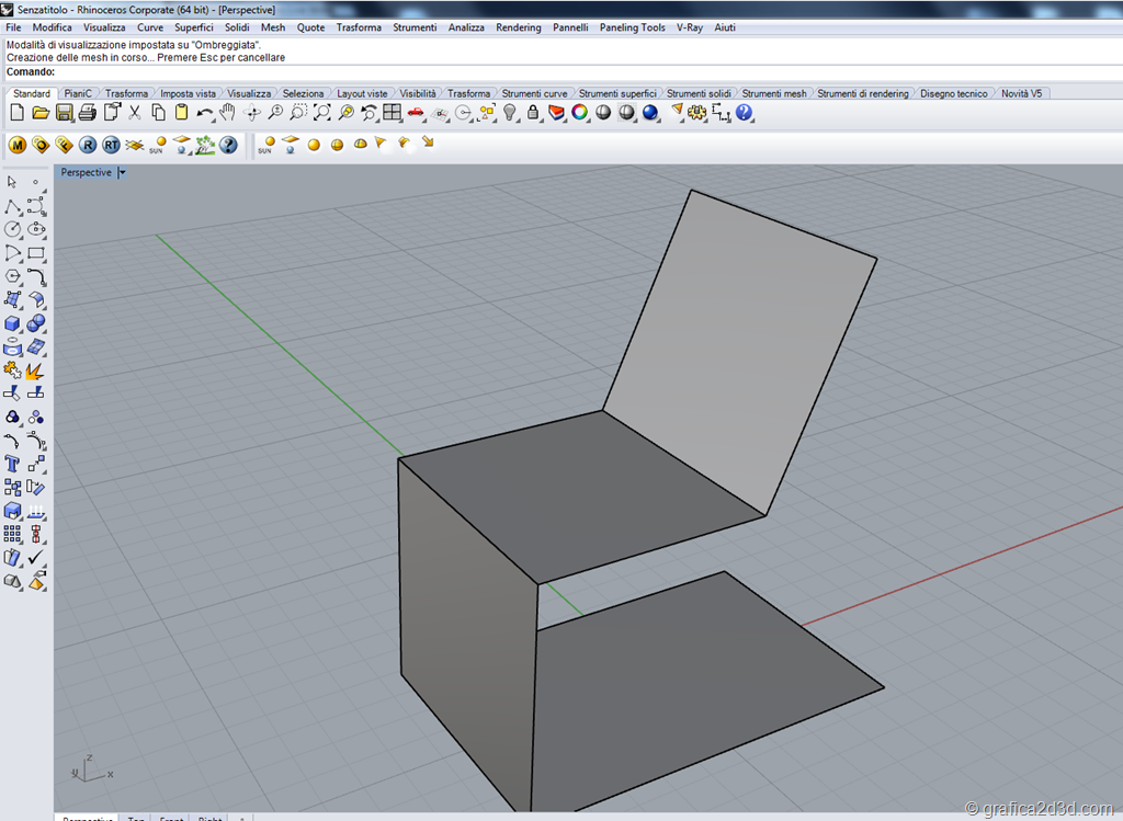 Normalmente rhino riesce a disegnare in bidimensionale solo nelle viste parallele a piano di costruzione, quindi se volessi fare un disegno sullo schienale per poi forarlo basta semplicemente inclinare il piano c sullo schienale ed effettuare il disegno.