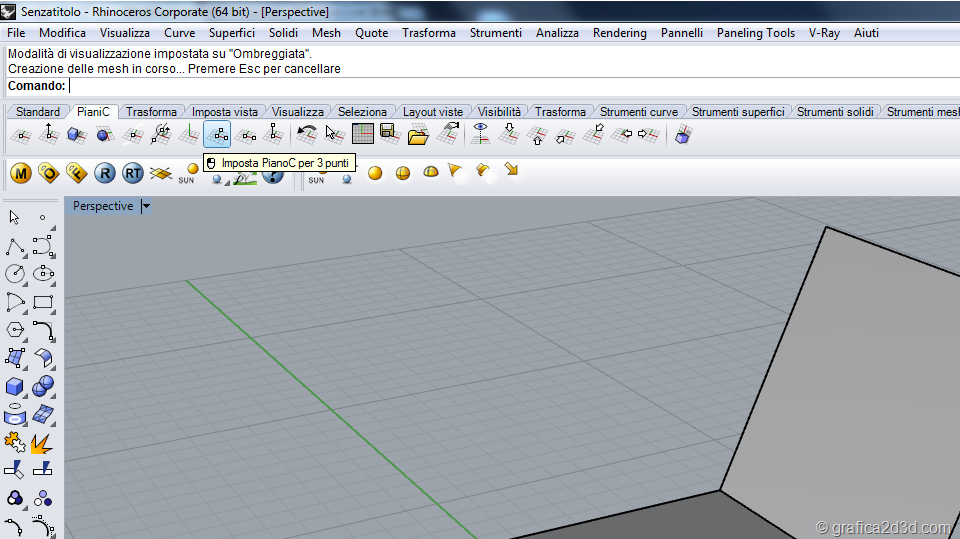 al 3 click vediamo che anche la griglia si inclina secondo il piano c a questo punto appare facilissimo effettuare un disegno sul piano inclinato per poi forarlo