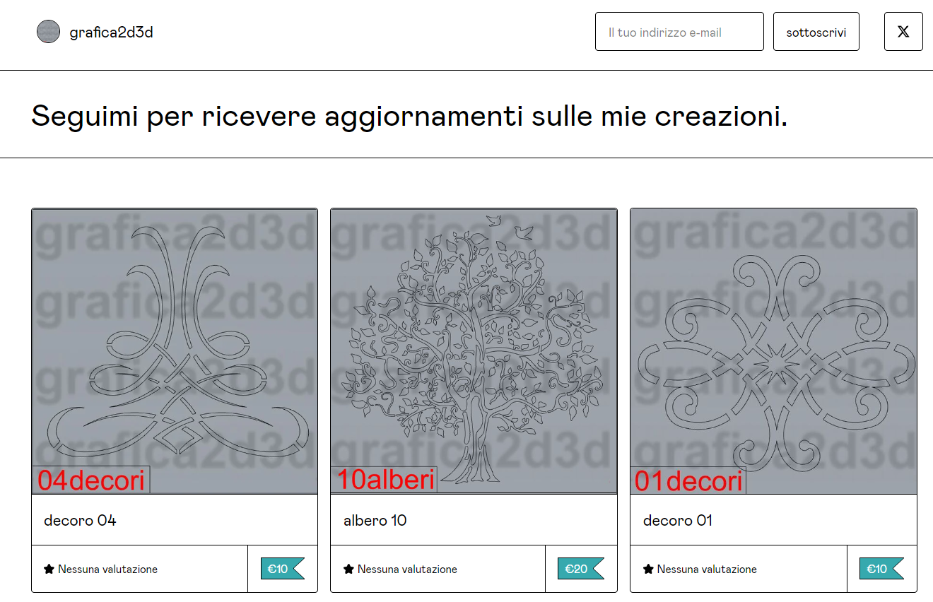 Pagina gumroad disegni dxf https://grafica2d3d.gumroad.com/ Navigazione articoli anello cuore subdiv rhino Vray fur sketchup