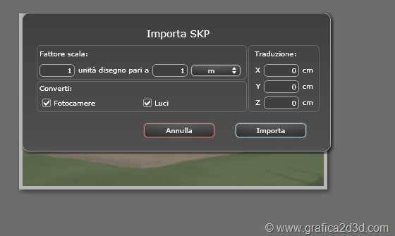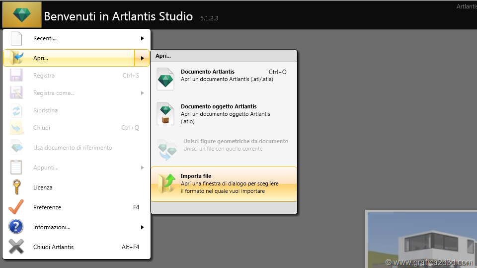 artlantis importa perfettamente i file di sketchup e conserva persino i materiali impostati in sketchup, se avete le ultime versioni di sketchup è preferibile salvare per sketchup 8, nel 3d non ci dovrebbero essere cambiamenti