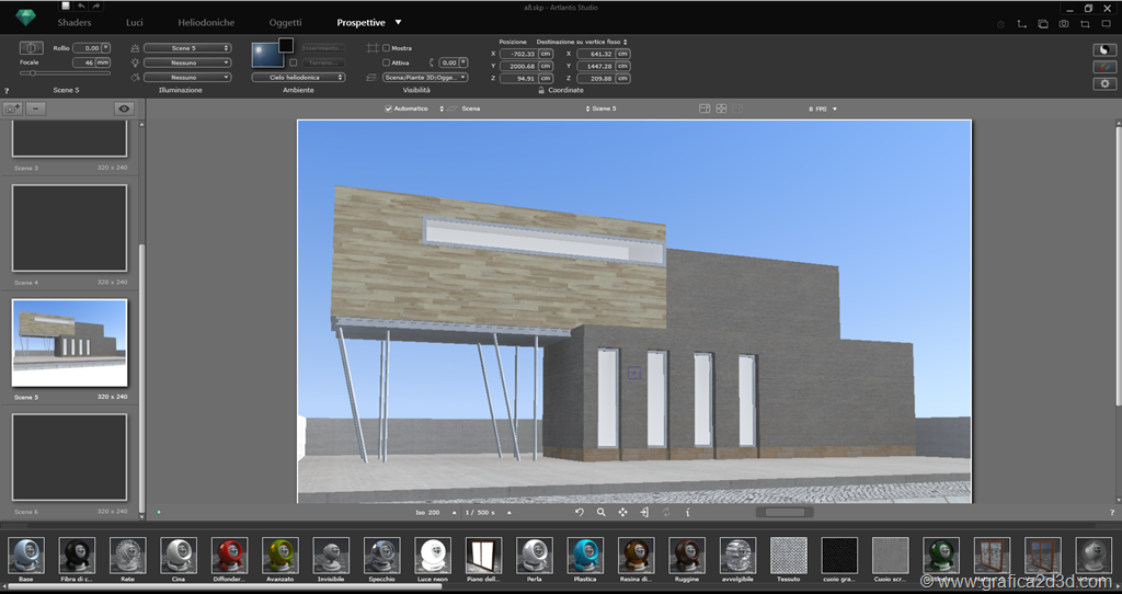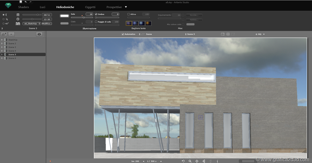con i selettori posso scegliere mese dell’anno e orario per variare la posizione delle ombre e rendere la vista più interessante