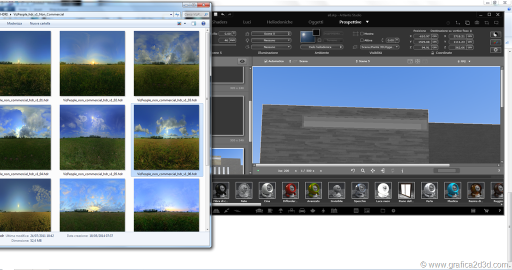 voglio illuminare questo esterno con un HDRI niente di più facile, basta trascinare il file sullo schermo di artlantis