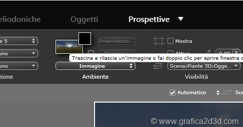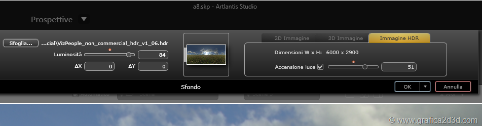 dal pannello che si apre ho impostato la luminosità dello sfondo e sulla destra la luminosità dell hdri nella scena