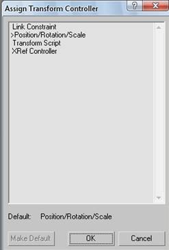 Si apre il pannello ASSIGN TRASFORM CONTROLLER , qui dobbiamo impostare come default POSITION7ROTATION/SCALE