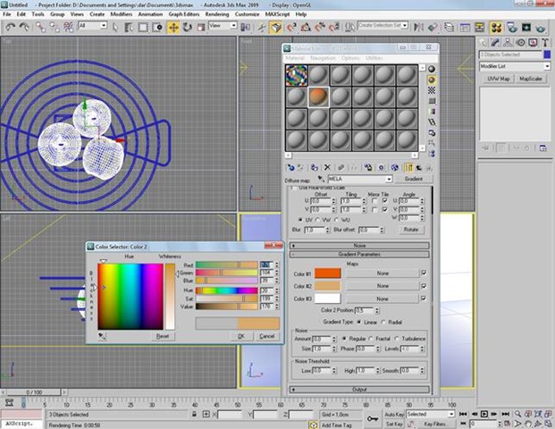 Creo un materiale vray e nel diffuse carico una mappa gradient che mi permette di sfumare 3 colori, proprio quello che mi serve