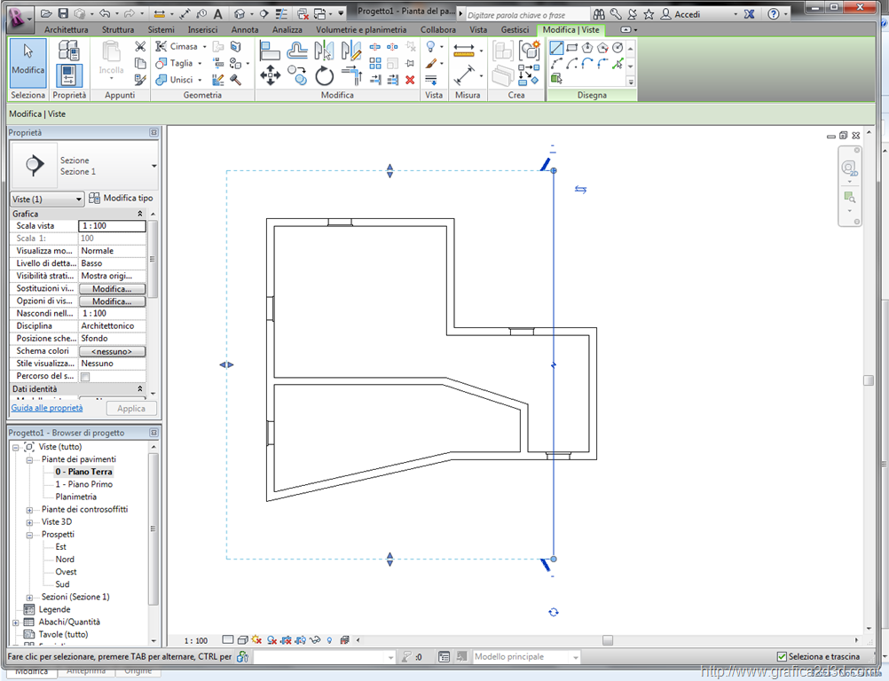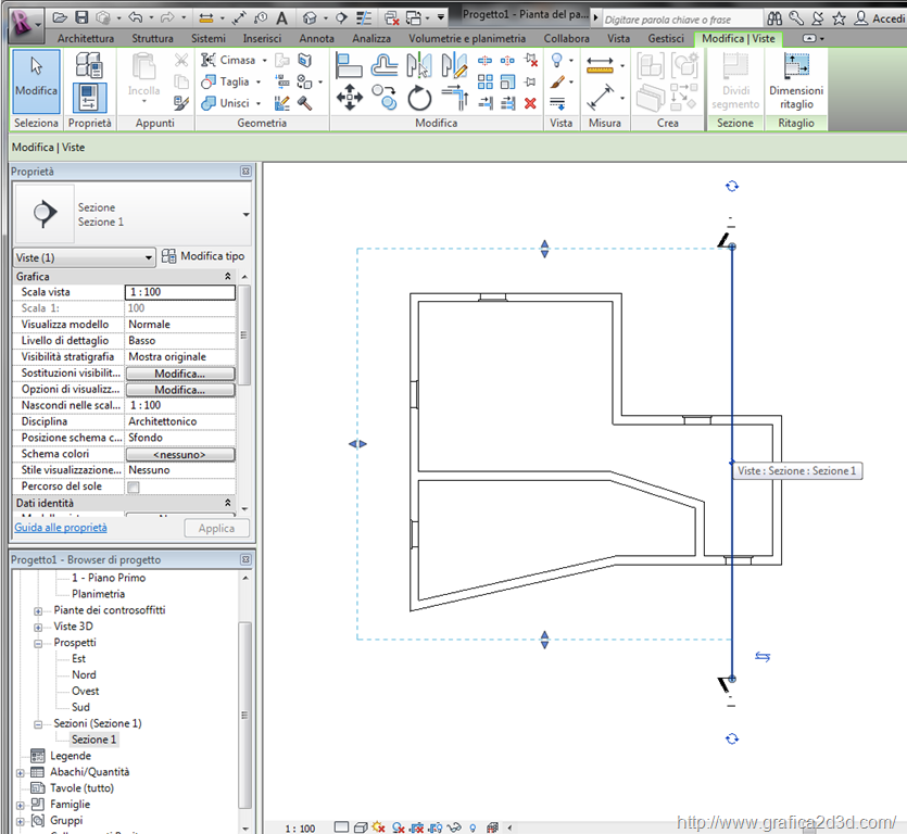 clicchiamo sul punto della sezione dove fare il taglio