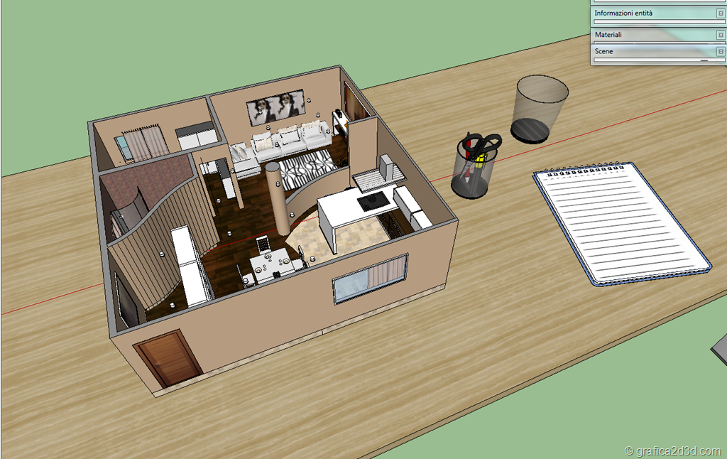 Mi è venuta questa idea al termine della modellazione di rappresentare la casa come se fosse un modellino ovviamente queste immagini tipo modellino non le mostro al cliente, ma le ho fatte per divertimento, sotto una parte dei render che altri sono ancora da completare in questi giorni