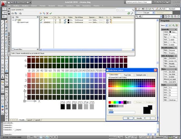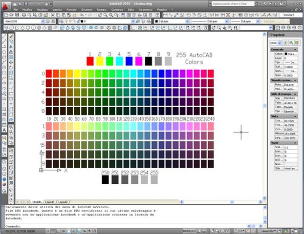 E mostra tutti i colori di autocad stampabili senza correre rischi, cioe scegliendo questi colori dalla palette colori autocad (COLORE INDICE) non corriamo rischi, il colore stampato sarà proprio quello.