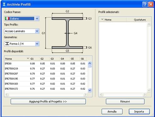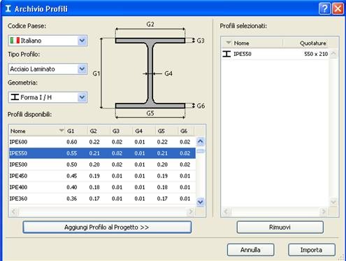 Scegliamo il nostro profilato, ad esempio IPE 500 selezioniamolo e premiamo aggiungi profilo al progetto