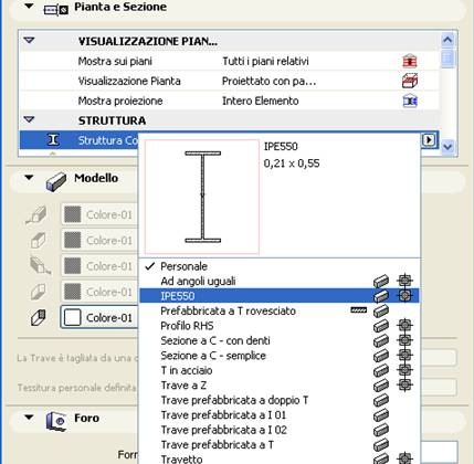 Per richiamare il profilo appena importato scegliamo lo strumento trave e attiviamo come forma i profili complessi indicati con il simbolo di trave a doppia t che vedete qua sotto