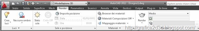 Il pannello render di autocad occupa la parte più a destra della scheda render![]()