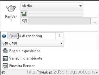 Cliccando sulla piccola freccia nell’angolo destro del pannellino apriamo il settaggio render