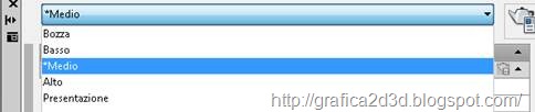 Dal selettore qui sotto possiamo impostare la qualità del render, possiamo scegliere tra qualità bozza, bassa ,media, alta, presentazione.