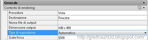 Con la regolazione esposizione del rendering possiamo regolare luminosità e contrasto un po’ come avviene con l’exposure control di 3d studio max usando mentalray