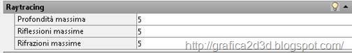 Con il pannello raytracing si imposta la quantità massima dei rimbalzi della lucenegli effetti di riflessioni e trasparenze