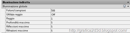 Utilizza raggio imposta un raggio massimo oltre il quale i fotoni dell’illuminazione globale non verranno calcolati