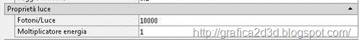 Con proprietà luce si impostano le caratteristiche delle luci fotometriche eventualmente usate nella scena