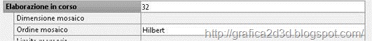 Dimensione mosaico indica la dimensione in pixel del quadratino che elabora il render, dimensioni maggiori danno una visuale maggiore del render in formazione, ma richiede più memoria per l’elaborazione del singolo quadratino
