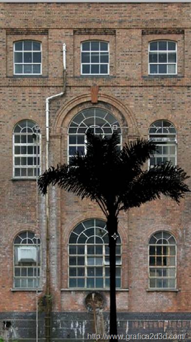 A questo punto rendiamo la palma leggermente trasparente, in quanto deve essere l’architettura retrostante