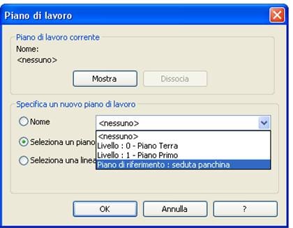 Dalla scheda inizio da imposta piano di lavoro scegliamo il piano su cui disegnare la seduta