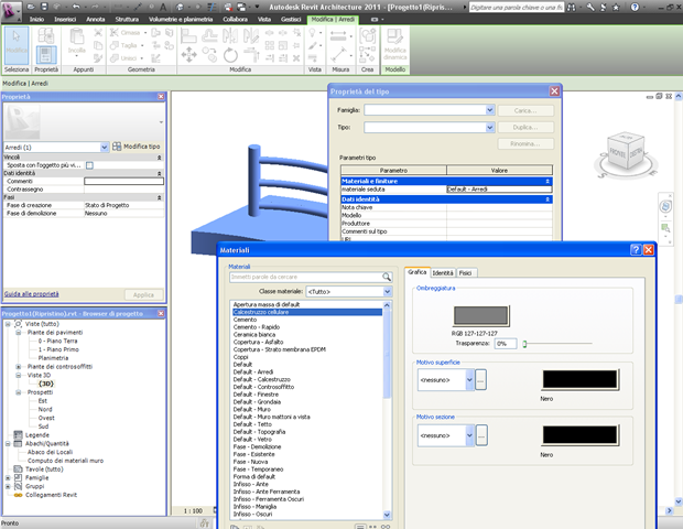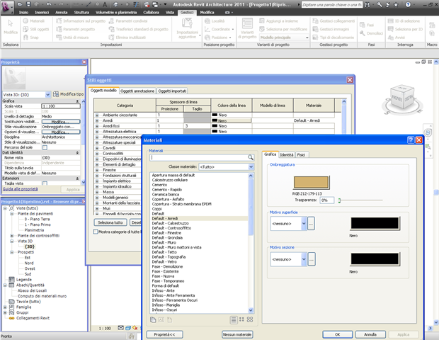 Una caratteristica di revit è quella di assegnare a tutte le parti di un oggetto il materiale assegnato alla categoria di riferimento dell’oggetto, ricordate nella prima parte quando siamo partiti con la creazione dell’oggetto e il programma ci ha chiesto che tipo di oggetto volevamo creare.