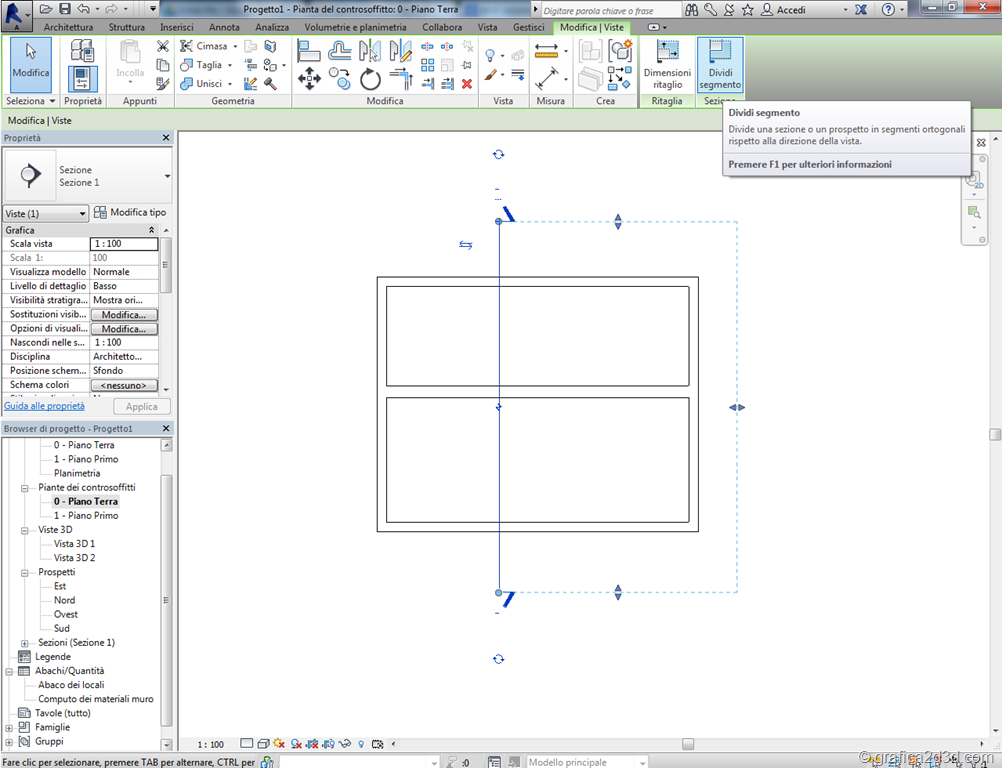 selezioniamola e dalla scheda modifica scegliamo dividi segmento