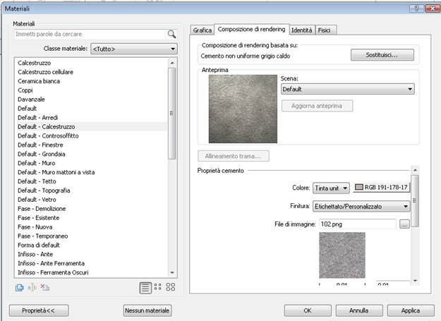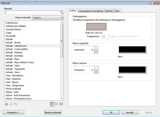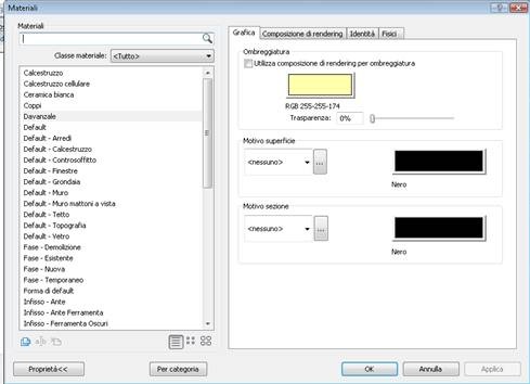 Tuttavia per le famiglie di sistema quali muri pilasti tetti solai non è possibile modificare il materiale nelle proprietà istanza ma solo nelle proprietà del tipo
