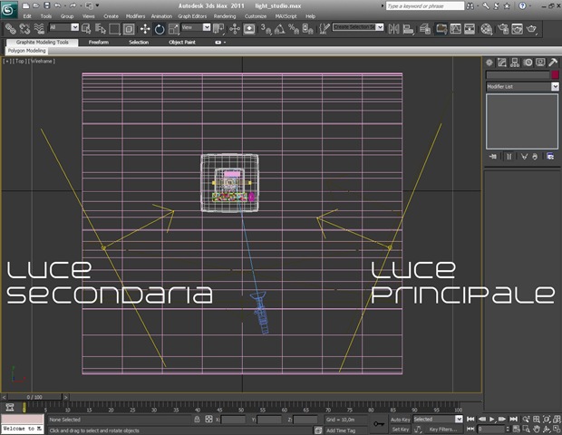 Quando dobbiamo renderizzare un oggetto singolo, conviene crearsi un set fotografico con tutte le luci già impostare, in modo tale che all’occasione basta semplicemente sostituire l’oggetto dargli i materiali ed il render è fatto.