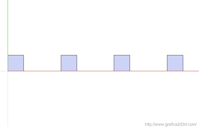 verranno inserite due copie dell’oggetto con 3 spazi come nel caso precedente, ma stavolta le copie sono successive alla prima e tutte equidistanti tra di loro![]()