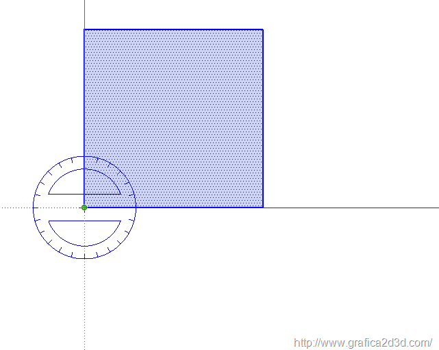 prevede la selezione dell’oggetto, appare un goniometro , click sul punto di rotazione , click su un secondo punto che definisce un asse di rotazione e poi digitiamo l’angolo di rotazione, che come al solito apparirà nella casella in basso a destra del programa![]()