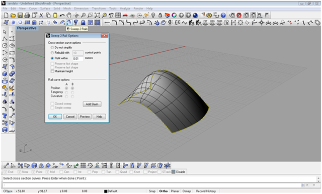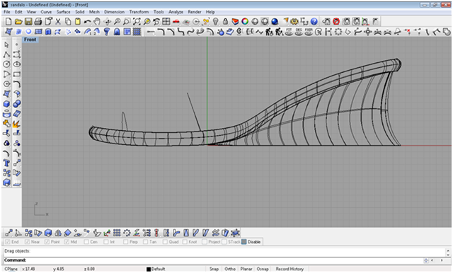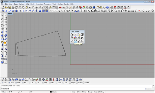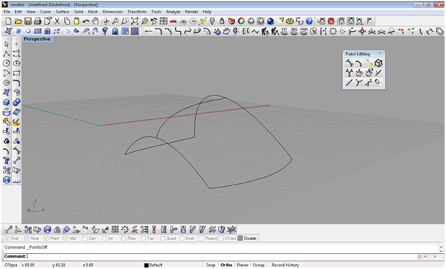 attraverso punti di controllo modello la curva della sezione creiamo una superficie per due punte