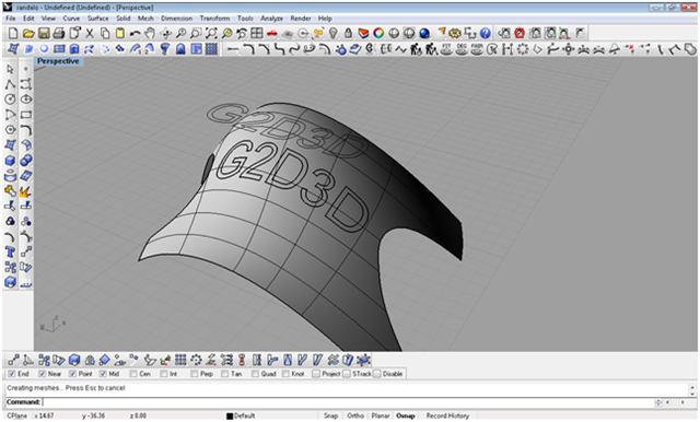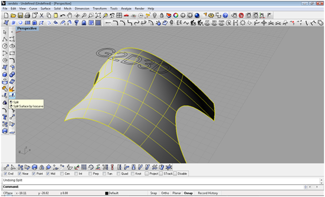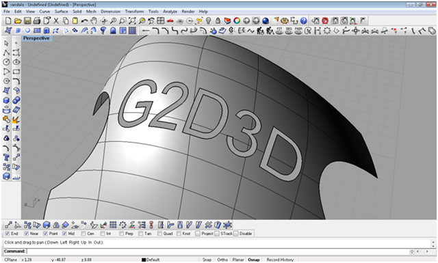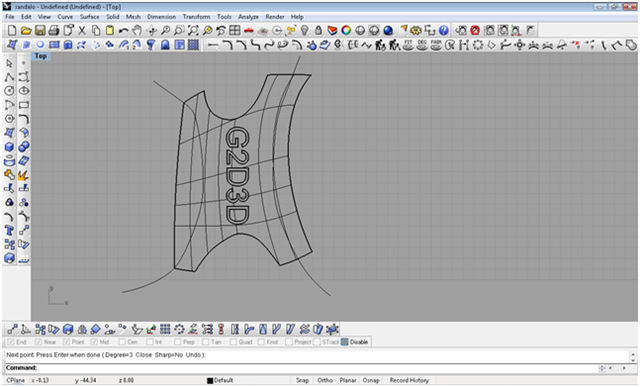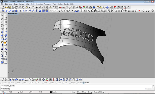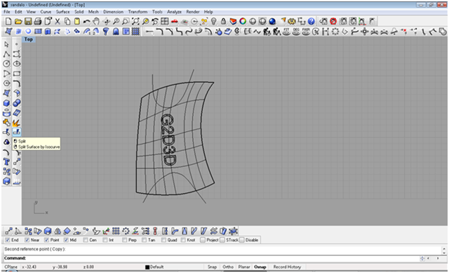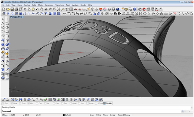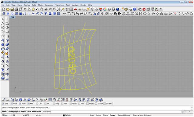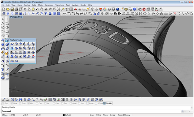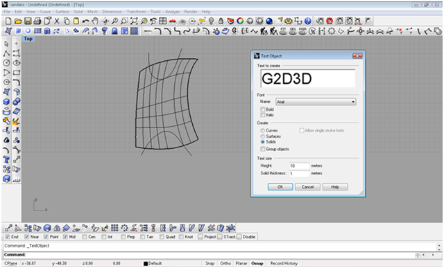 creando le iniziali del blog con lo strumento testo creo il testo creandolo come solido, definisco con due archi il taglio da dare alla scarpa con il comando spilt taglio le parti in eccesso