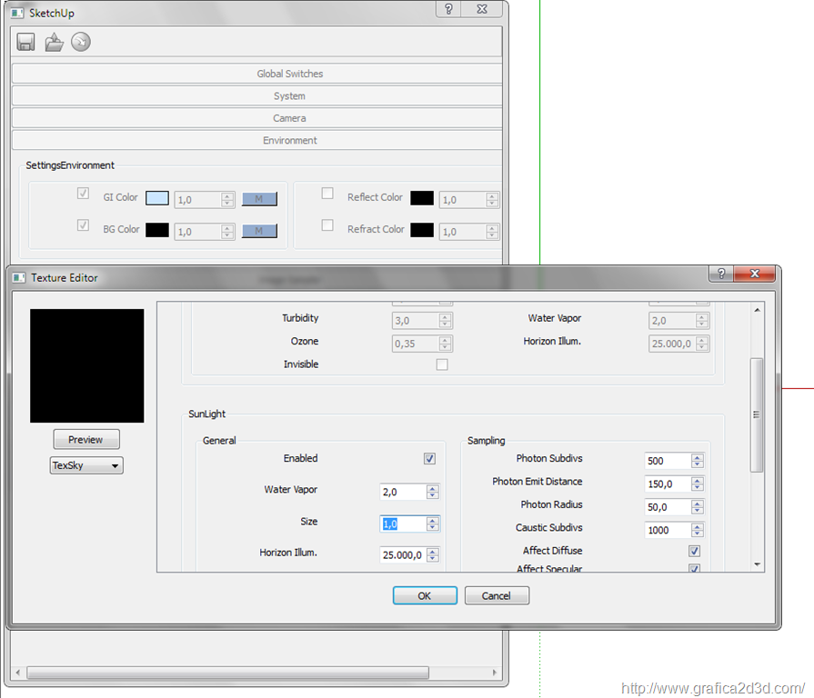in sketchup lo stesso identico valore lo troviamo nei settaggi di render vray, nella scheda environment