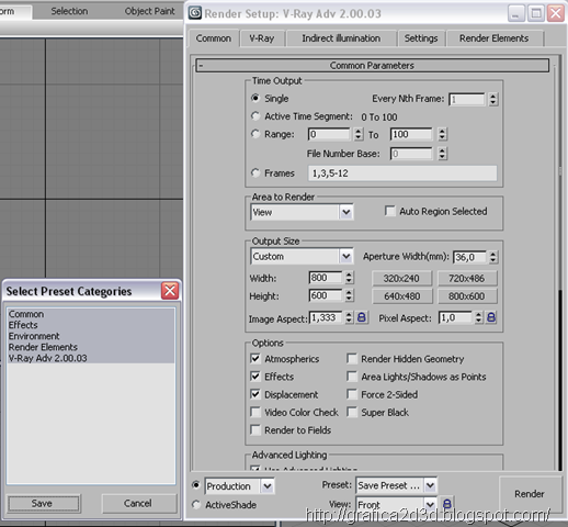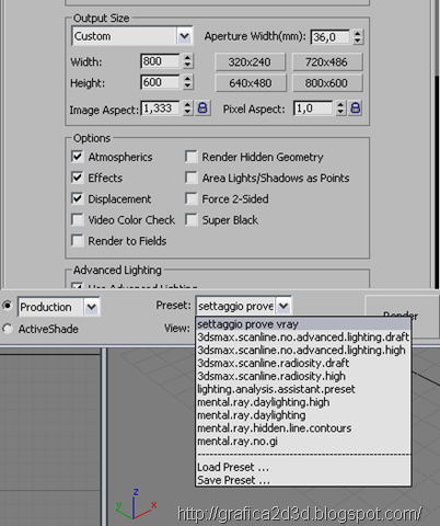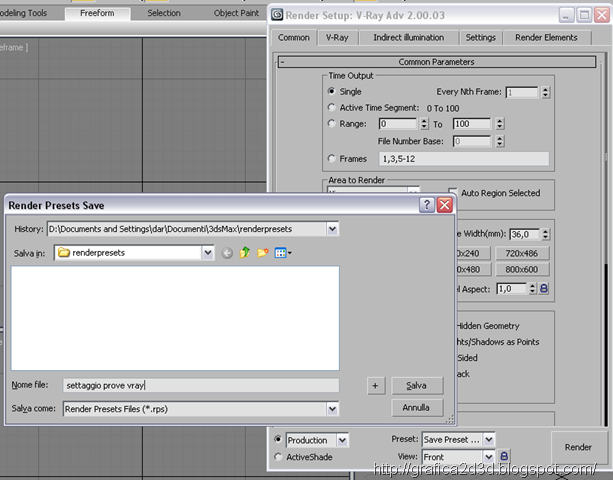 Un lettore del blog mi chiedeva come si possono salvare i settaggi di render per prove e finali, senza doverli ridigitare ogni volta, è semplicissimo