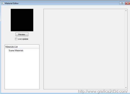 In questo momento il material editor è vuoto perche non abbiamo ancora creato nessun materiale