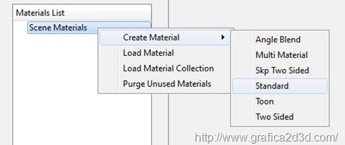 1. Seleziono nella scena l’oggetto al quale voglio dare il materiale, dal material editor seleziono il materiale, tasto destro del mouse e scelgo