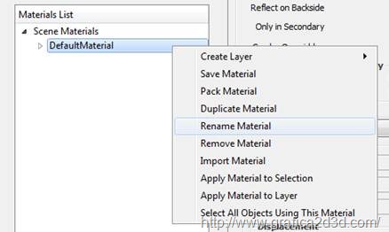 APPLY MATERIAL TO LAYER e dalla finestra che si apre scelgo il layer al quale voglio applicare il materiale, questo secondo metodo è più professionale, ci consente di essere più ordinati e di variare velocemente il materiale in caso di modifiche